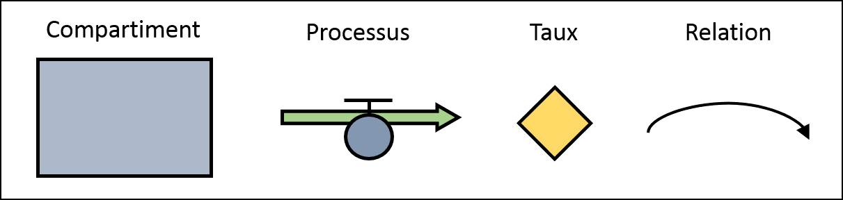 Compartiments, processus, taux et relations