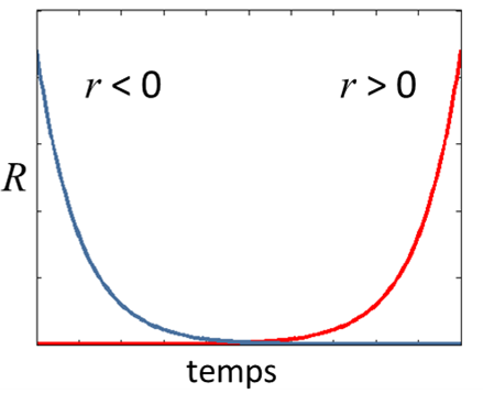 Le contenu du compartiment R(t) augmente ou diminue à un taux proportionnel à sa taille actuelle. |