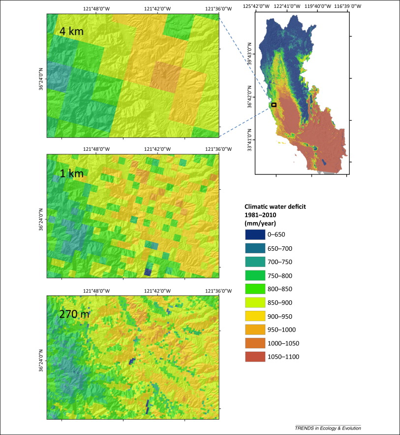Hannah, L., Flint, L., Syphard, A. D., Moritz, M. A., Buckley, L. B. et McCullough, I. M. (2014). Fine-grain modeling of species’ response to climate change: Holdouts, stepping-stones, and microrefugia. Trends in Ecology & Evolution, 29(7), 390-397. doi : https://dx.doi.org/10.1016/j.tree.2014.04.006